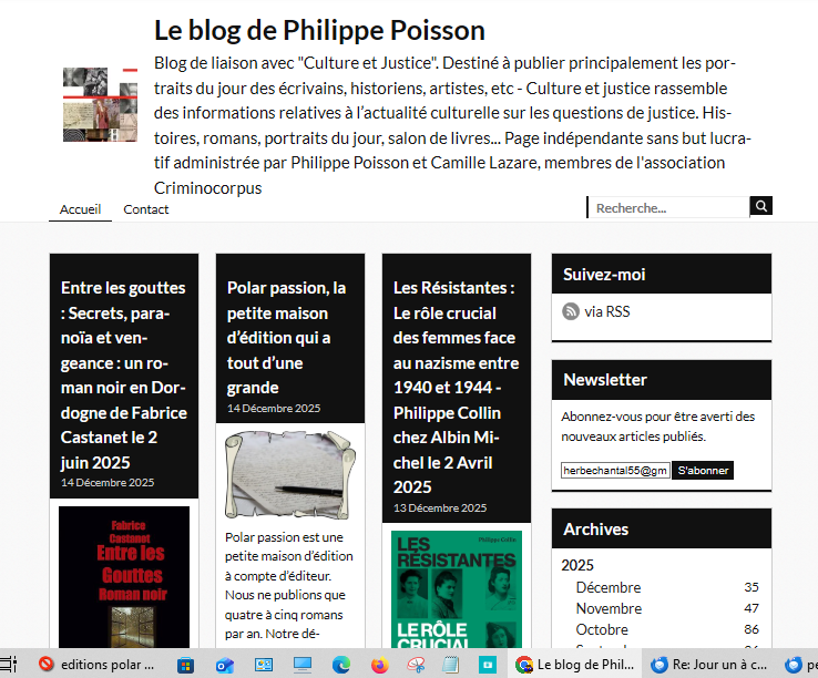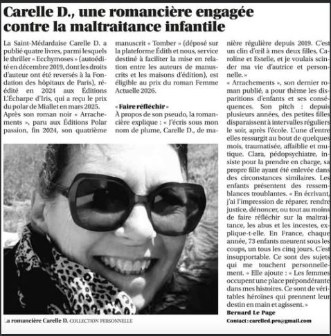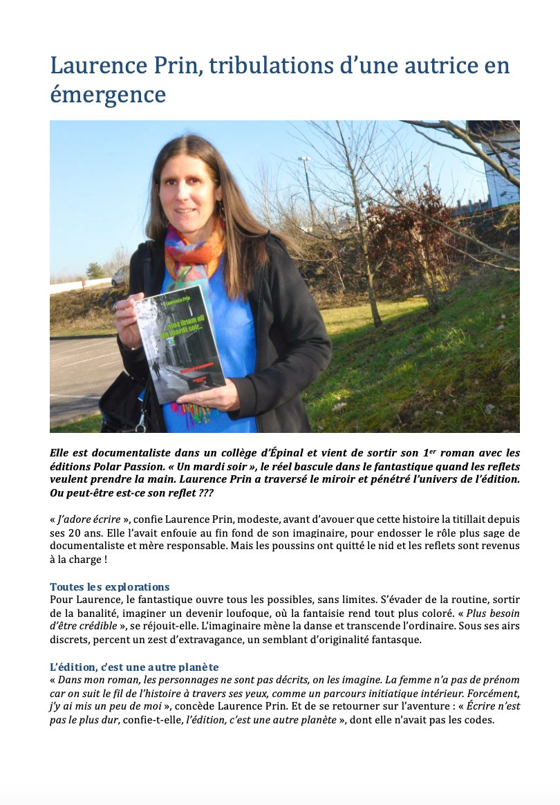 Presse et prix Interviews de Laurence Prin https://www.sudouest.fr/dordogne/mialet/miallet-succes-eclatant-pour-le-premier-salon-du-polar-23737726.php